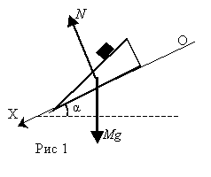 айдем ускорение a1 клина относительно плоскости. Так как по условию задачи брусок по сравнению с клином легкий, силой его воздействия на клин можно пренебречь. Поэтому клин двигается по наклонной плоскости под действием силы тяжести Mg (M - масса клина) и силы реакции плоскости N (см. рис. 1). В проекции на ось ОХ второй закон Ньютона для клина записывается в виде