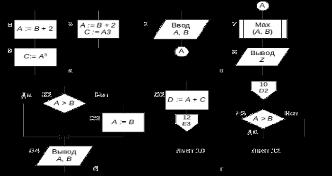 4. Допускается разрывать линии потока информации, размещая на обоих концах разрыва специальный символ «соединитель». В пределах одной страницы используется символ обычного соединителя, во внутреннем поле которого помещается маркировка разрыва либо отдельной буквой, либо буквенно-цифровой координатой блока, к которому подходит линия потока. Если схема располагается на нескольких листах, переход линий потока с одного листа на другой обозначается с помощью символа «межстраничный соединитель». При этом на листе с блоком-источником соединитель содержит номер листа и координаты блока-приемника, а на листе с блоком-приемником – номер листа и координаты блока-источника.