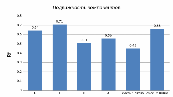 , где H0 - путь фронта, H1 – путь, пройденный компонентом. Путь, пройденный компонентом, отмечали по точкам, расположенным в центре пятна компонента.
