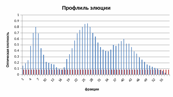 Дождались, когда голубой декстран спустится ближе к шлангу и начали измерять оптическую плотность на ФЭК в кювете толщиной 5мм (голубой декстран на 670 нм, цитохром С и хромат калия на 400 нм).