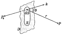 – математическая формулировка принципа Гюйгенса-Френеля.