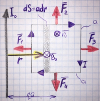 Найдём силы, действующие на стороны рамки, по правилу левой: