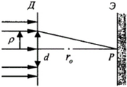 2) Дифракция – явление отклонения от прямолинейного распространения света в среде с резкими неоднородностями (края экрана экранов, отверстия и др.), что связано с отклонениями от законов геометрической оптики. Это приводит к огибанию световыми волнами препятствий и проникновению света в область тени.