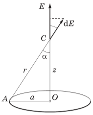 Расчёт электрического поля равномерно заряженного кольца: