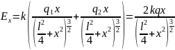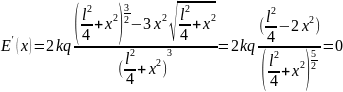 Из симметрии задачи напряженность направлена вверх по оси OX. Напряженность максимальна в той точке, в которой ее первая производная равна 0