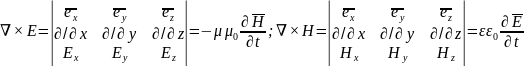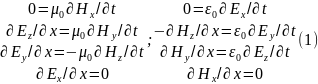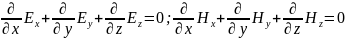 Установим основные свойства электромагнитной волны на примере плоской волны. Направим ось X перпендикулярно волновым поверхностям, при этом E и H и их проекции на Y и Z не будут зависеть от координат y и z, производные по y и z буду равны 0. Поэтому уравнения примут вид: