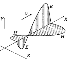 перпендикулярно направлению распространения волны – оси X. Значит, электромагнитная волна является поперечной. Кроме того, оказывается, векторы