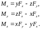 по координатным осям представляют моменты силы относительно координатных осей и определяются соответствующими компонентами векторного произведения: