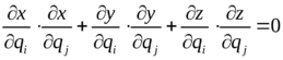 Если криволинейная система координат имеет в каждой точке пространства три взаимно перпендикулярные оси, то она является ортогональной системой координат. Ортогональными криволинейными системами координат, например, являются цилиндрическая и сферическая системы координат. Условием ортогональности криволинейной системы координат является равенство нулю скалярных произведений ортов координатных осей: