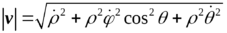 Так как сферическая система координат является ортогональной, то величина скорости точки равна корню квадратному из суммы квадратов составляющих: