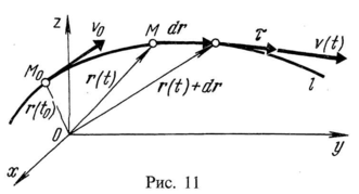 радиуса- вектора точки. Вектор элементарного перемещения точки направлен по касательной к траектории ее движения (рис. 19).