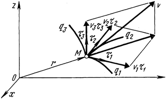 . Составляющие скорости точки по двум другим осям естественной системы координат равны нулю. Если представить вектор скорости точки