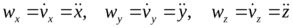 непосредственно следуют выражения для проекций ускорения на координатные оси: