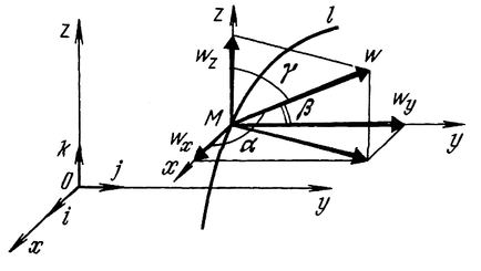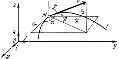 , легко получить выражение вектора скорости точки через ее проекции на те же неподвижные оси:
