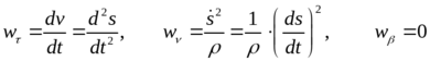 , находим выражения проекций ускорения на оси естественной системы координат: