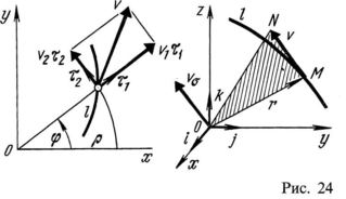 . Если же движение точки происходит по плоской кривой, то, вводя цилиндрические координаты