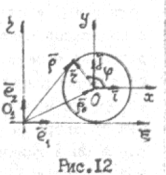 с началом в центре окружности и осями, параллельными осям неподвижной системы