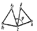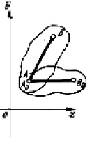 1. Теорема о произвольном перемещении плоской фигуры: произвольное перемещение плоской фигуры в её плоскости можно осуществить посредством поступательного перемещения вместе с произвольной точкой (полюсом) и вращательного перемещения вокруг полюса. При этом поступательное перемещение зависит от выбора полюса, а величина угла поворота и направление поворота от выбора полюса не зависят (рис. 6).