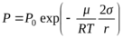 При получаем формулу для давления насыщенного пара над вогнутой поверхностью жидкости