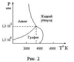 Некоторые вещества могут иметь несколько модификаций одной фазы, например, несколько видов кристаллической решетки. Переход из одной модификации в другую называется полиморфным переходом. На рис. 2 приведена диаграмма состояния углерода в двух его модификациях – графит и алмаз. При низких давлениях и температурах устойчивой модификацией углерода является графит, а при атм – алмаз. В нормальных условиях а