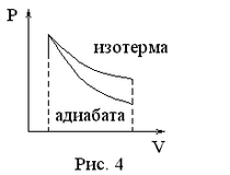 Из уравнения Пуассона видно, что если из одного и того же начального состояния с идеальным газом производится либо изотермический процесс (изотерма на рис. 4), либо адиабатический процесс (адиабата), то адиабата лежит ниже изотермы.