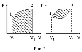 Здесь под понимается работа, совершаемая телом. Бесконечно малое изменение коли-чества тепла , также как и , не всегда является полным дифференциалом. Согласно определению внутренняя энергия есть однозначная функция состояния термодинами-ческой системы. Поэтому ее бесконечно малое изменение является полным дифференциа-лом. В круговом процессе , так как . При этом (см. рис. 2). Значения и зависят от вида теплового процесса.