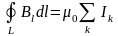 Теорема о циркуляции магнитного поля: циркуляция вектора магнитной индукции по замкнутому контуру с точностью до постоянного множителя 0 равна алгебраической сумме токов, охватываемых этим контуром.