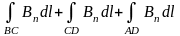 Вn равны нулю: на отрезках АВ и СD вектор В перпендикулярен этим сторонам, а отрезок ВС можно удалить в бесконечность, где В = 0. Тогда