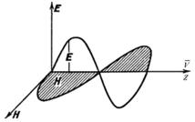 - скорость распространения волны), причем эти векторы связаны между собой правилом правого винта. Это лишь качественное рассмотрение электромагнитной волны, но теория Максвелла позволила не только предсказать существование электромагнитных волн, но и установить строгие количественные соотношения между основными параметрами этих волн.