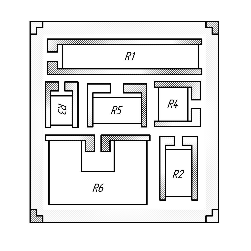 Рис. 1: Эскиз компоновки спроектированных резисторов