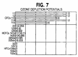 As shown in FIG. 7, an index called the Ozone Depletion Potential (ODP) has been adopted for regulatory purposes. The ODP of a compound is an estimate of the total ozone depletion due to 1 Kg of the compound divided by the total ozone depletion due to 1 Kg of CFC-11 refrigerant. Thus, the ODP shows relative effects of comparable emissions of the various compounds.