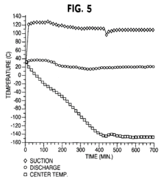FIG. 5 is a graph depicting the pull down rates of CFC refrigerants in a conventional autocascade system at 90° F. ambient.