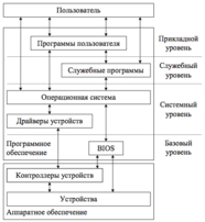 | Устройства ввода ЭВМ. Назначение, типы: К устройствам ввода информации относят клавиатуру и такие ПУ, как сканнеры, манипуляторы типа «мышь», джойстики. Клавиатура: это стандартное клавишное устройство ввода, предназначенное для ввода алфавитно-цифровых данных и команд управления. Манипулятор типа «Мышь: предназначен для быстрого доступа к элементам интерфейса пользователя и инициирования на них событий с помощью кнопок. Типы: шариковая, оптическая. Сканер: Это устройство для ввода в ЭВМ информации с бумаги, слайдов или фотопленки.Типы: планшетные, ручные. Видеотерминальные устройства: Видеокарта: обеспечивает формирование изображения, его хранение, обновление и преобразование в сигнал, отображаемый монитором. Состав видеокарты: графический процессор, видеопамять, цифро-аналоговый преобразователь, видеоакселераторы. Характеристики мониторов: размер экрана, разрешение, размер зерна и частота развертки монитора. Типы мониторов: на основе электронно-лучевой трубки, жидкокристаллические, плазменные. | Устройства вывода данных. Принтеры: Устройства вывода данных из ЭВМ и фиксирующие их на бумаге. Основные характеристики: разрешающая способность, скорость печати, объем установленной памяти и максимальный формат бумаги. Типы принтеров: матричные, струйные, лазерные. Понятие алгоритма. Свойства алгоритмов, способы описания: Полное и точное описание на некотором языке конечной последовательности правил, указывающих исполнителю действия, которые он должен выполнить, чтобы за конечное время перейти от исходных данных к искомому результату. Свойства алгоритмов: дискретность, детерминированность (определенность), понятность, завершаемость, массовость, результативность. Формы записи алгоритмов: словестная, псевдокод, схематическая (графическая, структурограммы) Программное обеспечение ПК. Основная классификация: Совокупность программ, процедур и правил, а также документации, связанных с функционированием системы обработки данных. Классификация ПО по уровням: | |