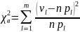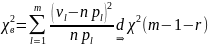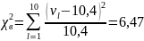 Во второй строке представлены эмпирические частоты выпадения значений из верхней строки; в третьей теоретические частоты при гипотезе