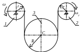 3. Угловая скорость барабана 2 ω2 =1рад/с. Определить скорость точки А ступенчатого барабана, катящегося без скольжения по неподвижной поверхности, если