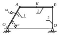 Для заданного положения механизма скорость и ускорение ползуна A составляют соответственно vA = 0,2 м/с, аA = 0,1 м/с2.