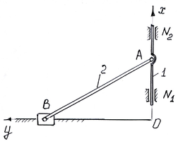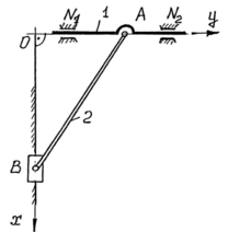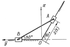 4. В плоском механизме стержень АВ шарнирно связан с ползунами в точках A и В.