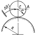 4. Диск радиуса r катится без скольжения по цилиндрической поверхности радиуса R = 2r = 0,4 м. Центр диска движется по закону sC =s(t) = 0,2t2 (s – в м, t – в м).