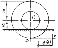 3. Колесо радиуса r = 0,2м катится без скольжения по прямолинейной направляющей. Его центр C движется по закону s = 0,1(t2 -3t) (s - в м, t - в с ).