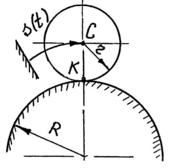4. Диск радиуса r катится без скольжения по цилиндрической поверхности радиуса R = 3r = 0,3м так, что скорость его центра A постоянна по величине vA = 0,2 м/с. Найти скорость и ускорение точки B диска.