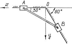 3. В плоском механизме линейка АВ шарнирно связана с ползунами в точках А и В. Ползун А движется по горизонтальной направляющей по закону