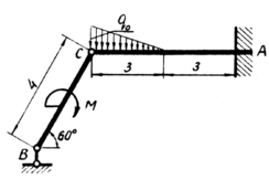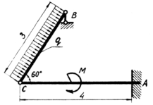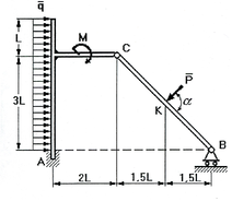 P, M = 4Pl, q0 = 3P/l, α = 60°, β = 30°,