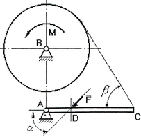 F = 30 Н, Q = 50 Н, AD = AC/3, α = 30°, β =60°. Весом барабана пренебречь.