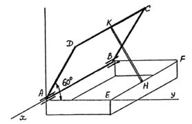 3. Крышка AВСD прямоугольного ящика опирается на невесомый стержень с шарнирами H и K на концах. Вес крышки P = 10 Кн , угол