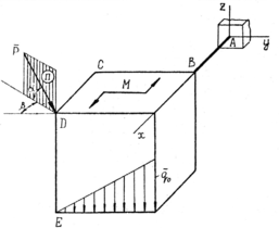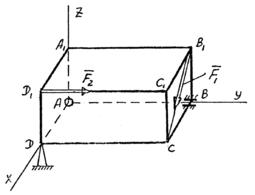 с помощью шарового шарнира A и петли B, а в точке D опирается на острие. К брусу приложены силы