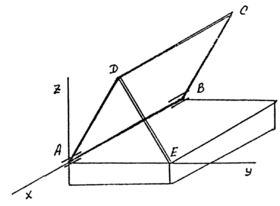 3. Крышка AВСD прямоугольного ящика опирается на невесомый стержень с шарнирами D и E на концах. Вес крышки P = 20 Кн , угол