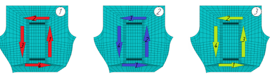 Рис. 12. Схема укладки швов при моделировании.