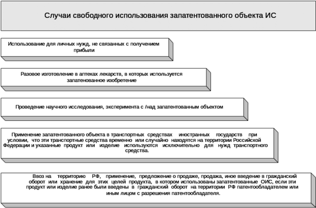 Рис. 3.2. Случаи свободного использования запатентованных ОИС