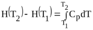 Изменение энтальпии вещества при увеличении температуры от Т1 до Т2 (при отсутствии в этом интервале температур фазовых переходов (Phase transition) может быть рассчитано по соотношению:
