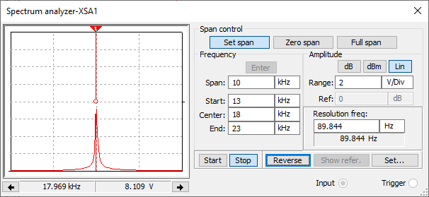 График 2. График спектра для f2 = 18 кГц методом диапазонов